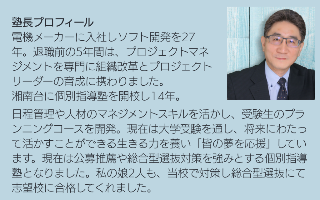 湘南台駅の東口を出て、「マクドナルド」と「OKストア」の間の駐輪場を抜け、線路沿いを直進し、3分ほど歩くと左手に教室が見えます。